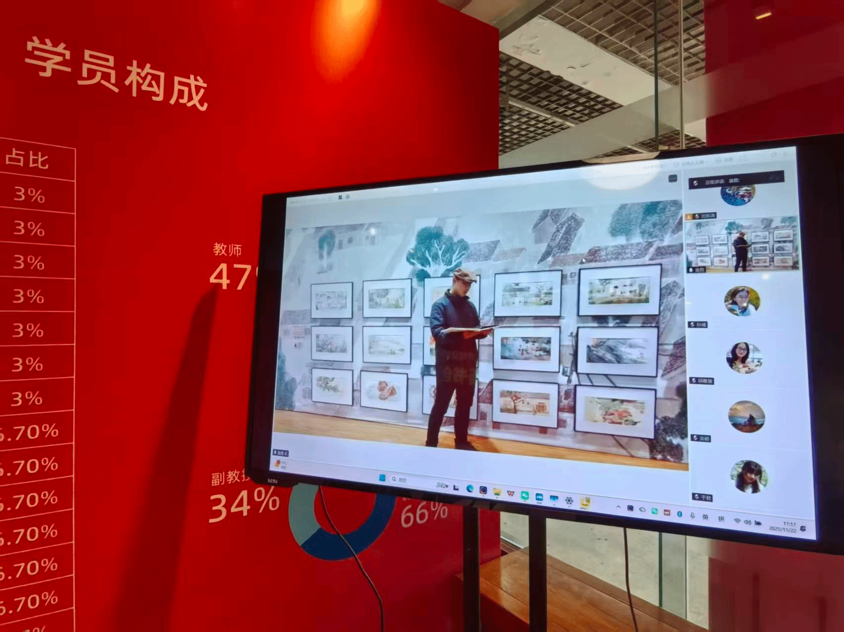 当日上午至下午,结业汇报答辩同步举行。30位学员通过线下与线上相结合的方式,以“亲子阅读”形式陈述作品,并接受评审专家的提问与点评。答辩围绕创作目的、灵感来源、作品完善方向等展开,旨在从创意、叙事、艺术表现等多维度评估学员成果,推动作品进一步优化与出版。