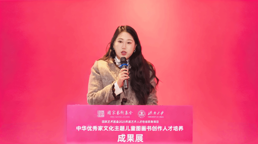 学员代表张珈瑜也分享了参与项目的心得体会。她表示,为期35天的沉浸式培训与后续的线上辅导,是一次从理论到实践的完整淬炼,不仅让学员们系统掌握了家文化与图画书的专业知识,更在专家引领下树立了深厚的文化自信,并通过对齐鲁大地的实地寻根,使文化从书本概念变为可感的创作源泉。展望未来,她将带着从项目中汲取的养分与信念,继续用画笔讲述中国故事,以匠心温暖儿童心灵。