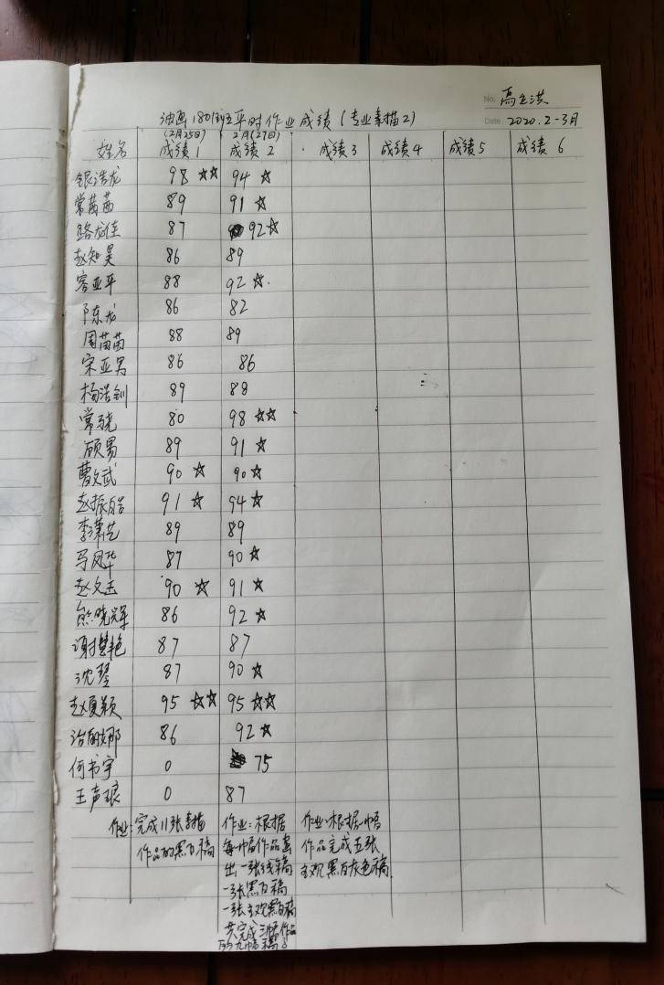 三、马立洪老师的课程是技法课,由于不能现场督促指导学生完成作业练习,马老师用点名互动、每天打分等方式激发学生的参与积极性,全方位了解每个学生的学习状况。