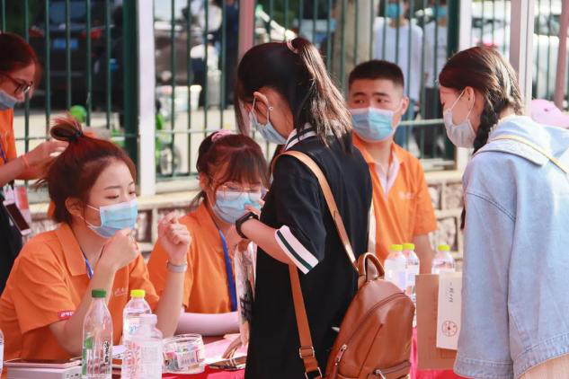 的报到处,与院领导一起讨论新生报到事宜和疫情防控要求,亲切地询问关怀着新同学和服务人员,关心和激励新同学,期待他们在济大开启新的旅程。