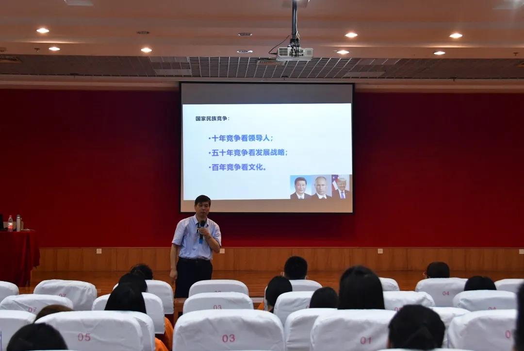2020级全体新生的到来表示欢迎,期望新生们能够尽快适应大学生活,做好自己的事情,并且努力工作和学习。李朋忠教授的演讲十分富有激情,举用自己在教学生涯中的亲身见闻向同学们阐述论点,李朋忠教授阐述的幽默有趣,新生们听得都十分认真。