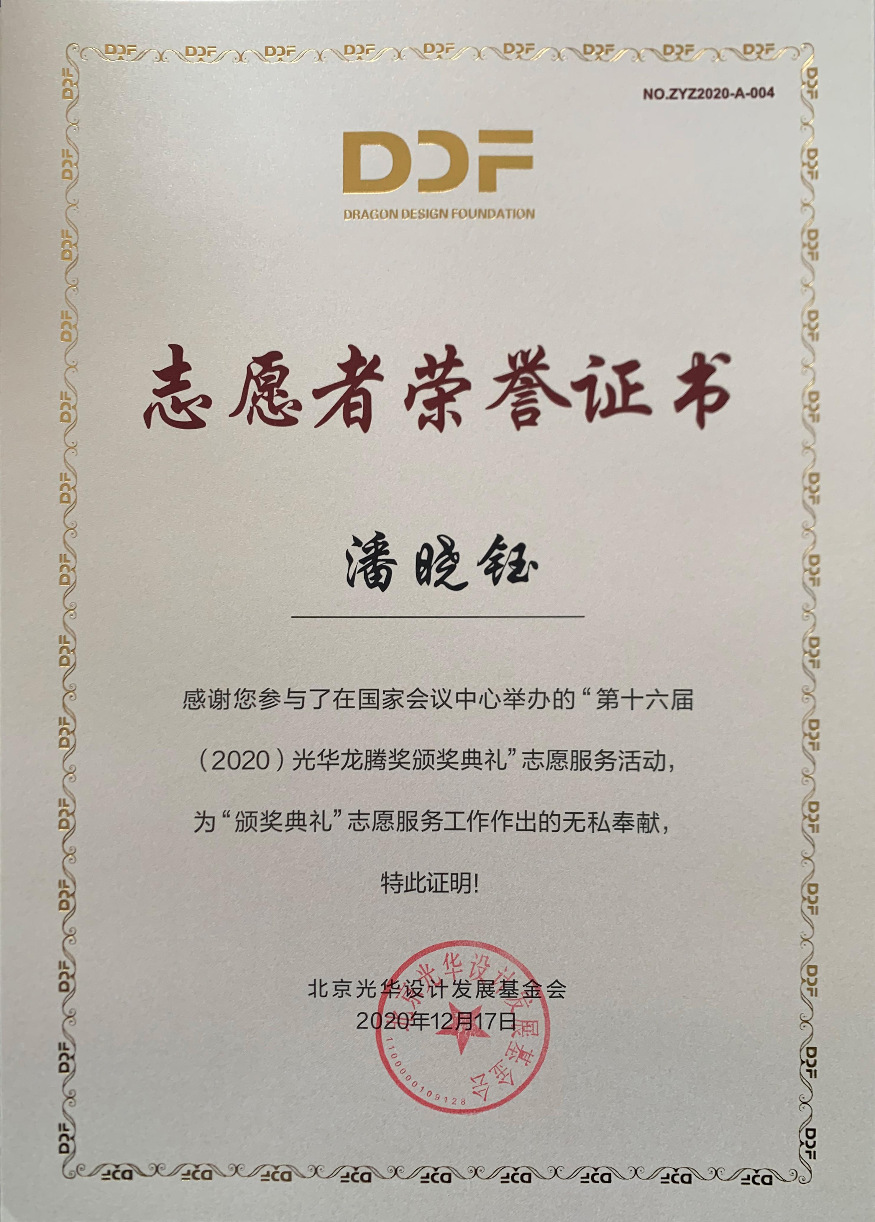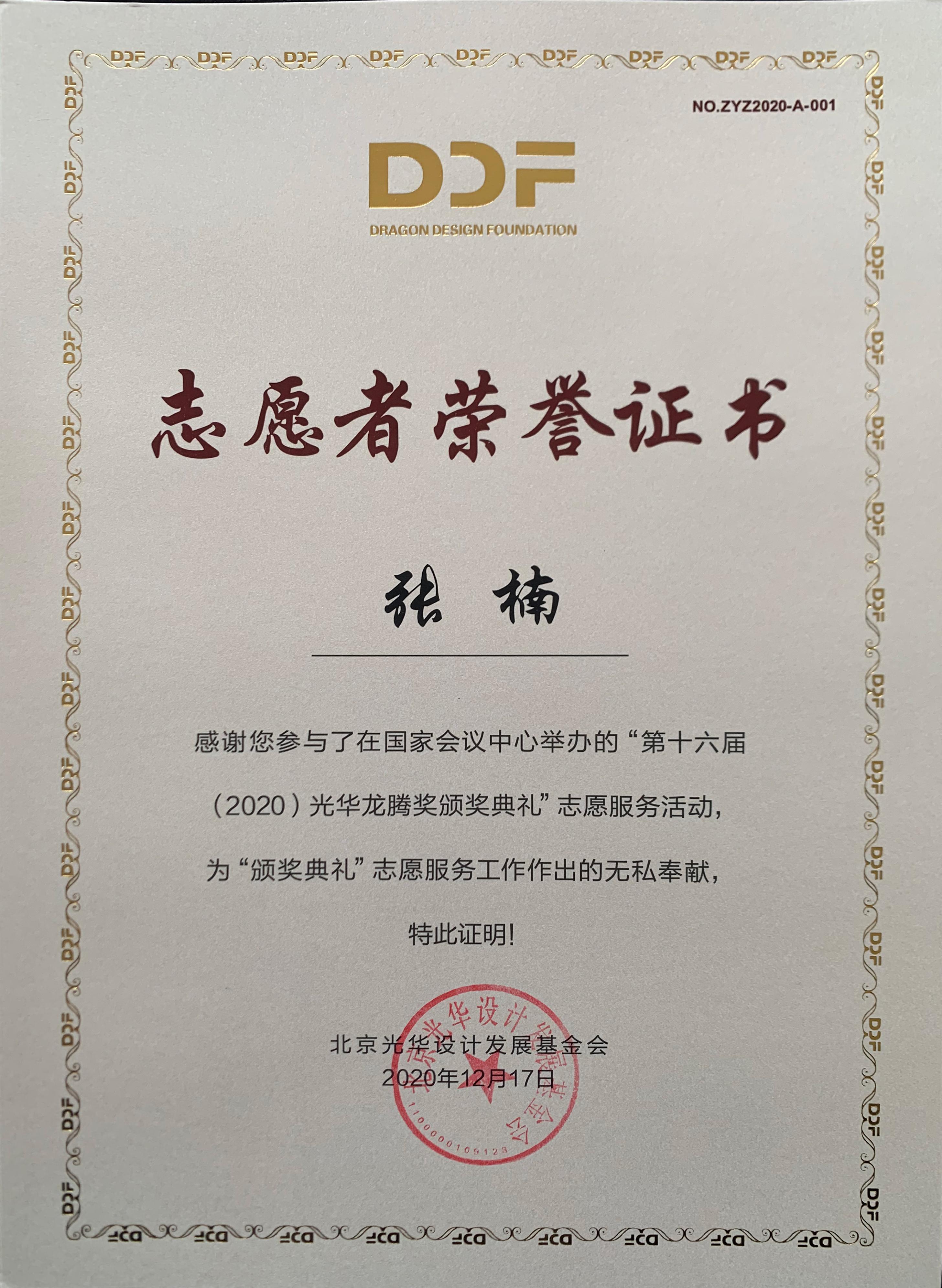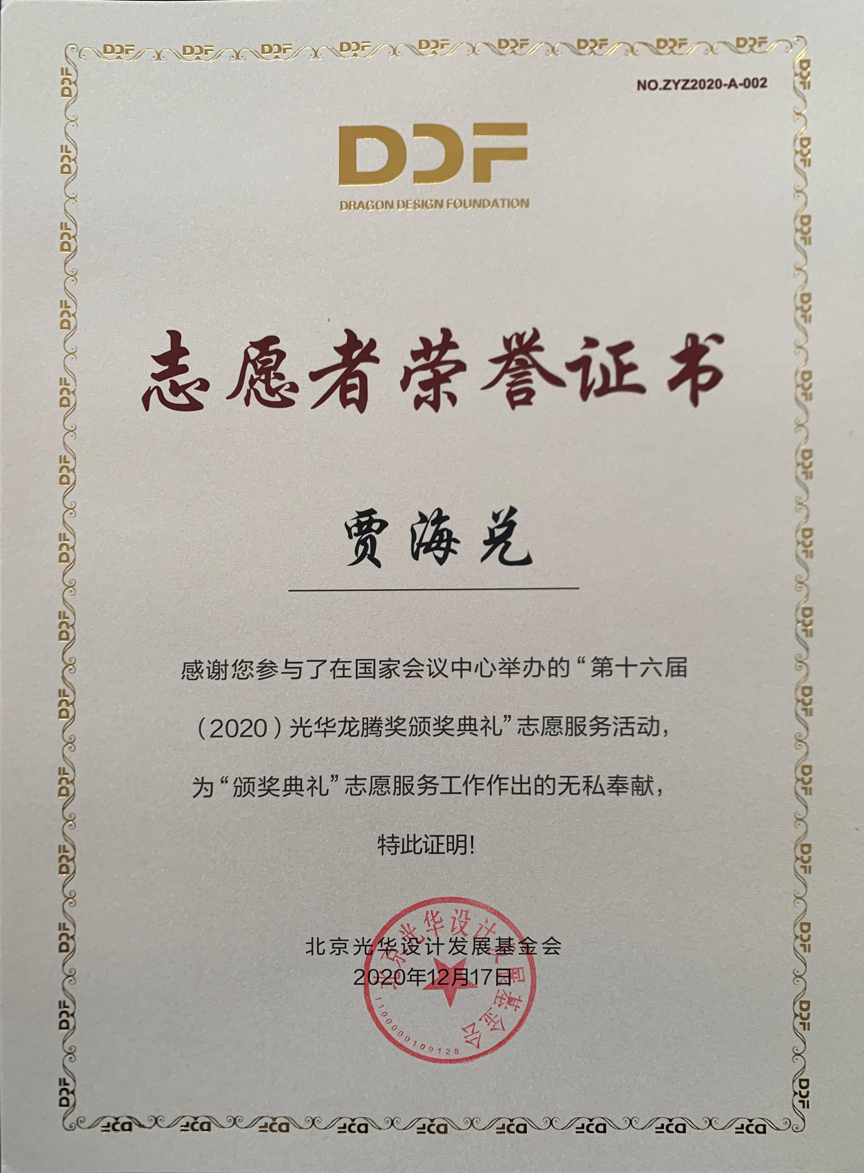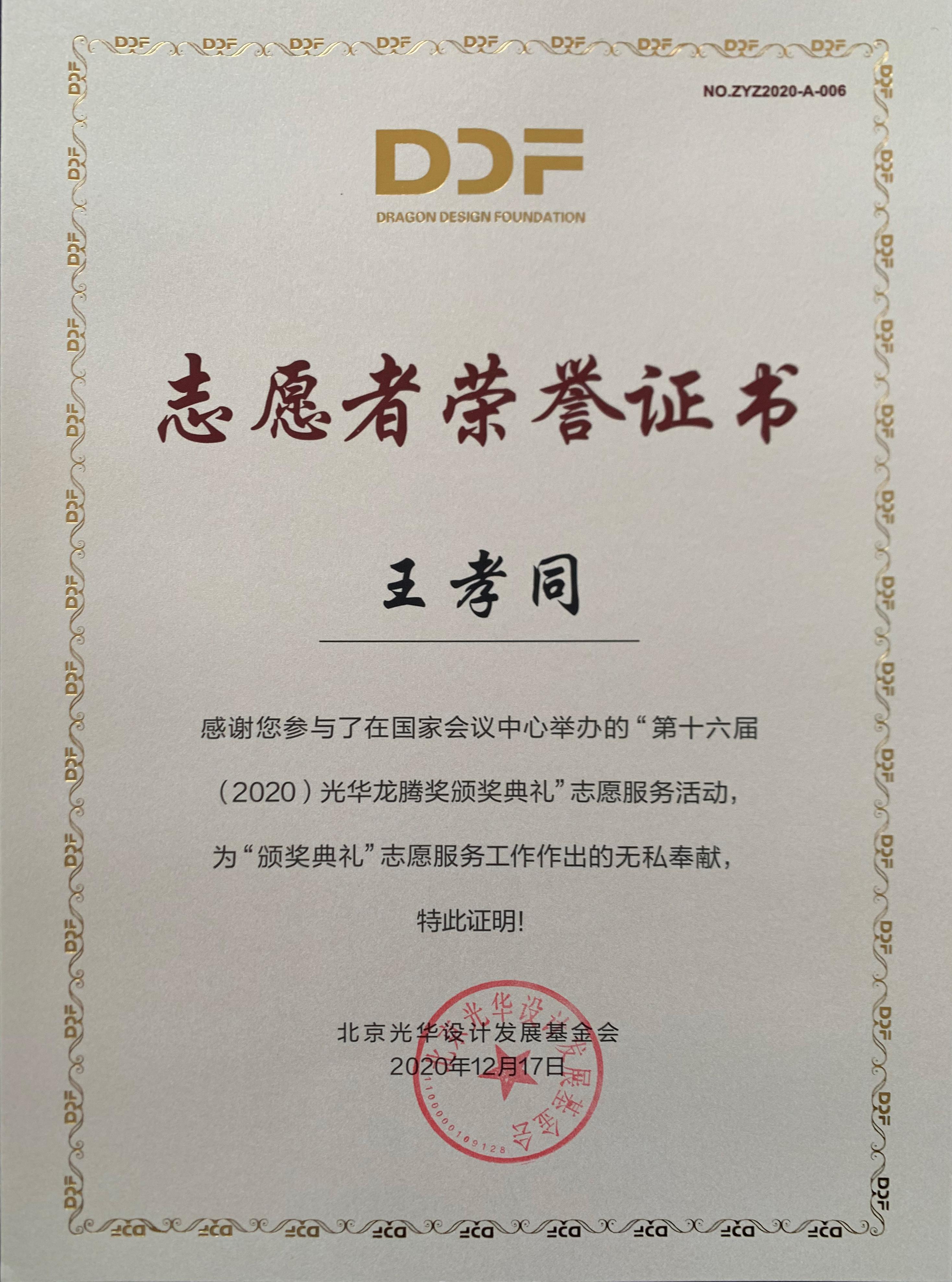 志愿服务队”为北京光华设计发展基金会相关活动作了大量设计志愿服务工作,得到组委会高度肯定并获颁志愿者荣誉证书。