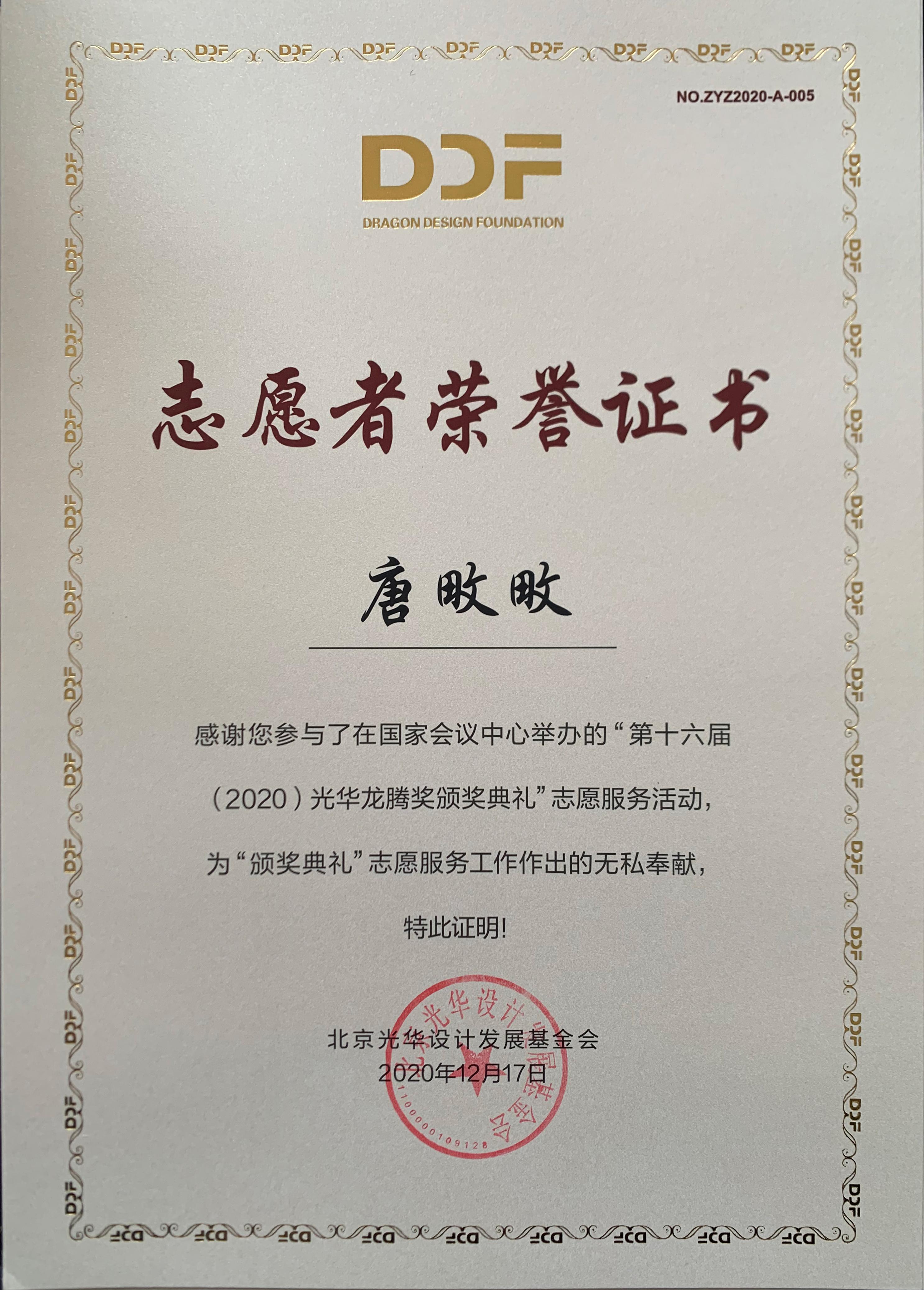 志愿服务队”在杨海波老师指导下,2019级研究生张楠、贾海兑,2020级研究生潘晓钰、唐畋畋、王孝同等同学累计进行了100余小时的志愿服务,服务内容包括图文设计、新闻撰写、网站维护等专业服务,设计方案得到与会专家的高度认可,为第十六届光华龙腾奖颁奖典礼举行做出了突出贡献。