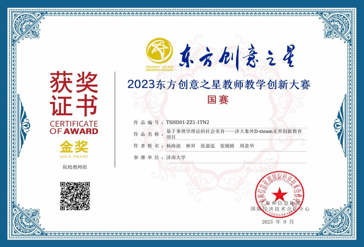 杨海波中华美育无界创新教研团队经过激烈角逐,从全国1502个参赛队伍中脱颖而出,荣获金奖。