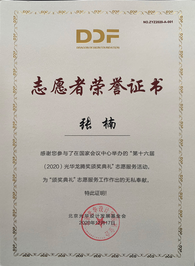 志愿服务队”为北京光华设计发展基金会相关活动作了大量设计志愿服务工作,得到组委会高度肯定并获颁志愿者荣誉证书。