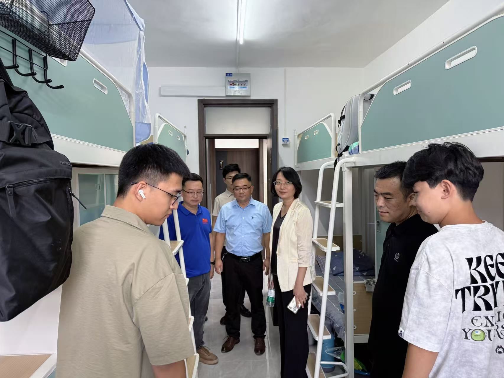 在交流中,学院领导特别提醒新生们要增强安全意识,规范使用宿舍电器,防范电信诈骗,遵守宿舍管理规定,共同营造文明和谐的宿舍氛围。同时也勉励同学们尽快适应大学新节奏,珍惜青春时光,树立远大理想,科学规划学业与人生发展方向,在新的学习征程中踔厉奋发、勇毅前行,努力创造属于自己的精彩大学生活。