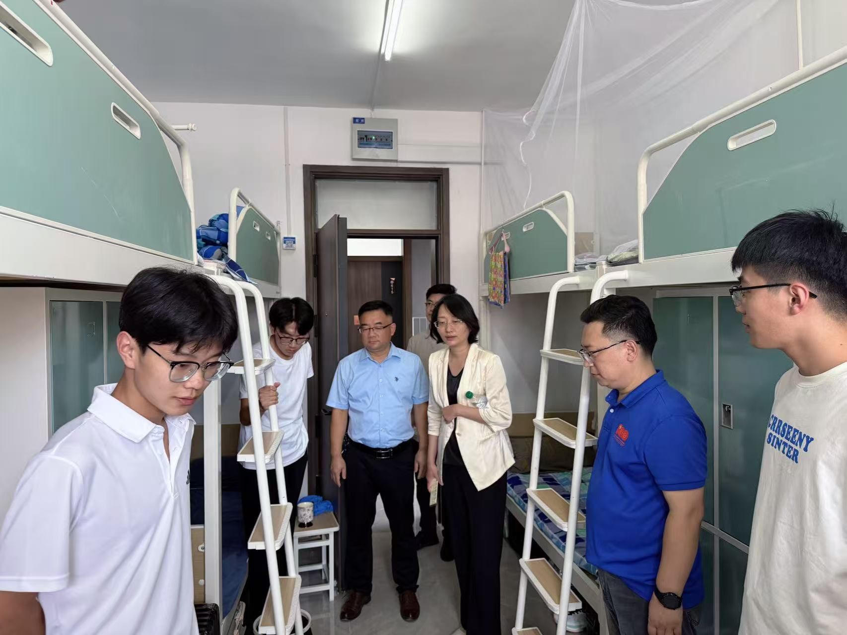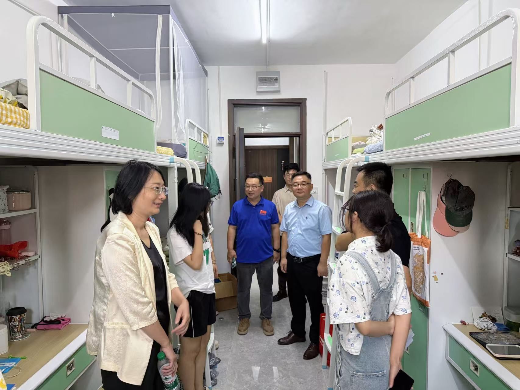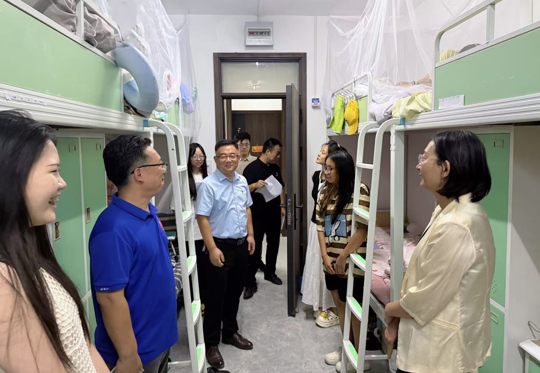为全面掌握2025级新生的入学适应状态和思想动态,帮助同学们尽快适应新环境、融入新集体、开启新生活,9月10日下午,学院党委书记陈春锋,副院长杨海波,党委副书记、副院长何贵亮带队走访学4、学5宿舍楼,看望并慰问新入学的同学们。