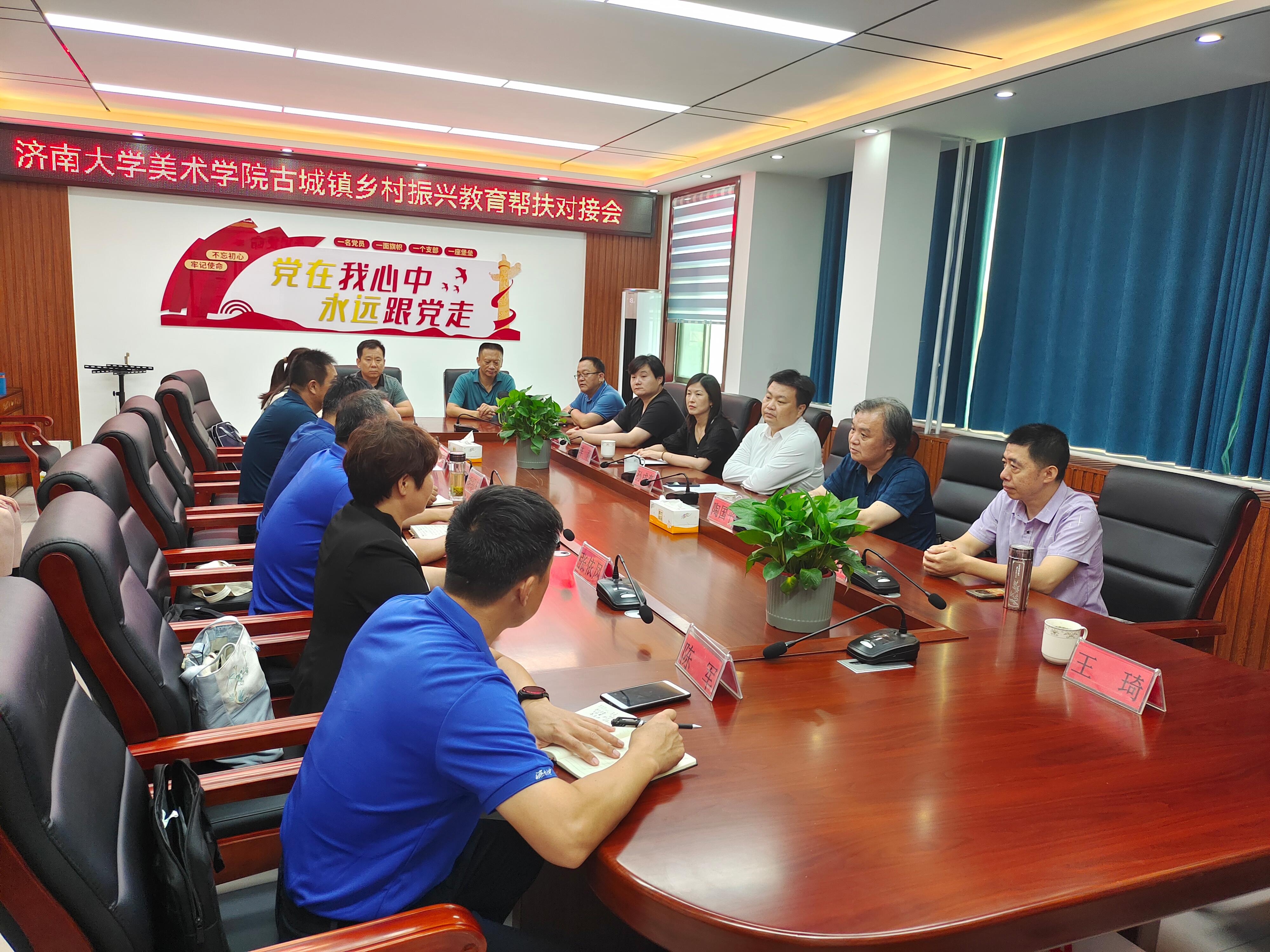 美术学院师生的到来表示热烈地欢迎,就古城镇历史沿革、总体发展情况、帮扶村概况、乡村文化建设、学校师资等进行了详细介绍。