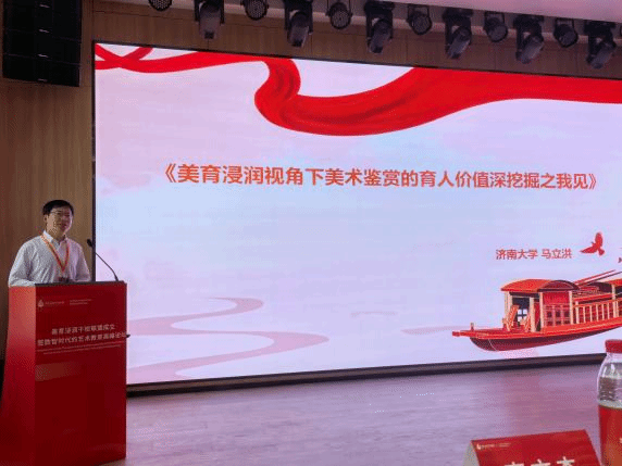 近日,由山东省教育厅指导,山东师范大学、中华美学学会青年美学专业委员会主办,山东省学校美育改革发展研究中心、山东师范大学承办的“美育浸润千校联盟成立暨数智时代的艺术教育高峰论坛”在山东师范大学千佛山校区举行。来自国内外兄弟院校的专家学者、教育实践者,驻济高校师生等700余人参加活动。黄色影片 副院长杨海波、美术系副主任马立洪应邀参会。