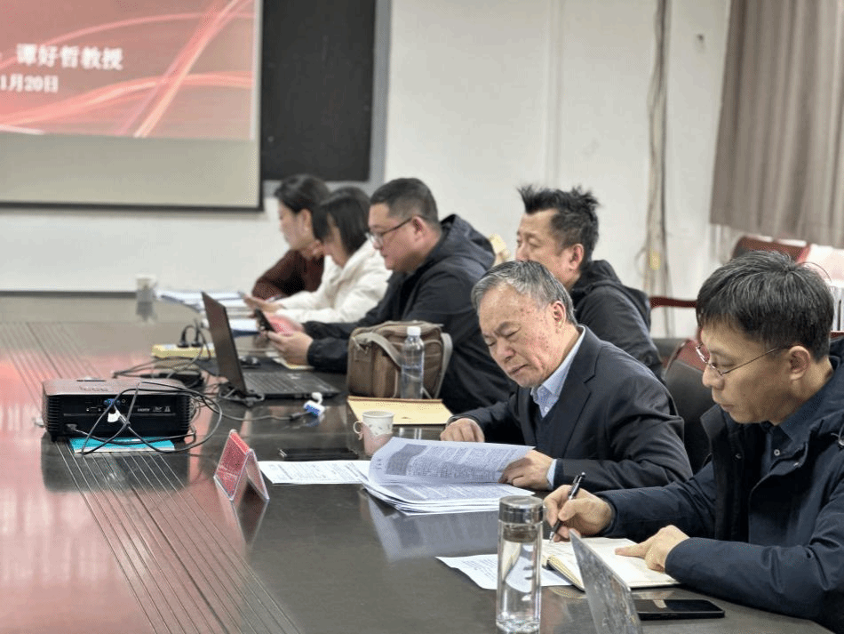 活动伊始,陈春锋热烈欢迎并诚挚感谢谭好哲教授莅临指导,简要介绍了学院2026年社科项目申报筹备情况、目标及进展。希望教师们珍惜此次交流的机会,深入请教、精心打磨申报书,切实提升申报质量与竞争力。