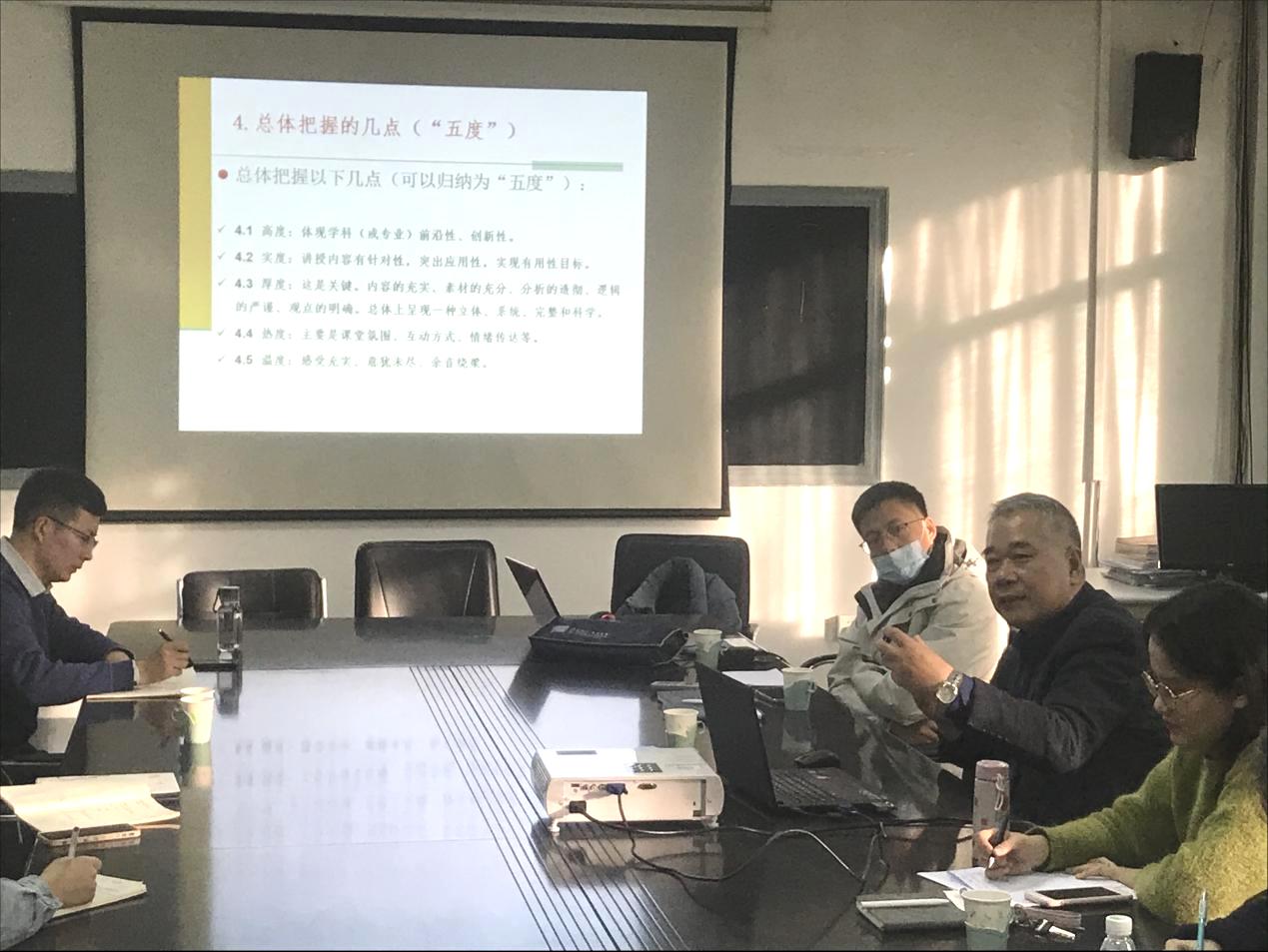 教师做了详细讲解,并结合实例和经验,从教学环节的设计、教学情境的创设及课程思政的融入等方面进行了详细的讲授。孙书记鼓励青年教师要敢于创新,敢于争先,争取在比赛中取得优异的成绩。与会教师备受鼓舞、受益匪浅,并表示将按照柳教授的指导和建议对自己的讲课内容进行完善。