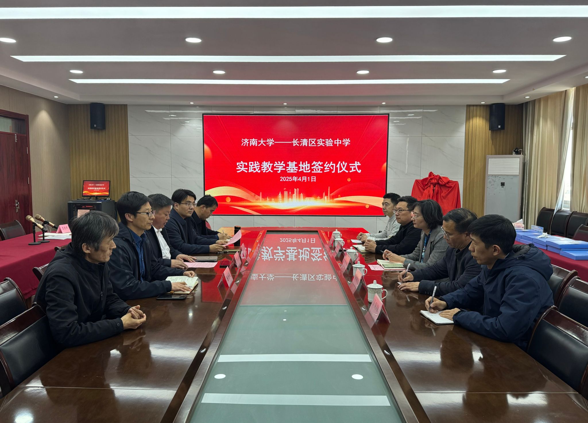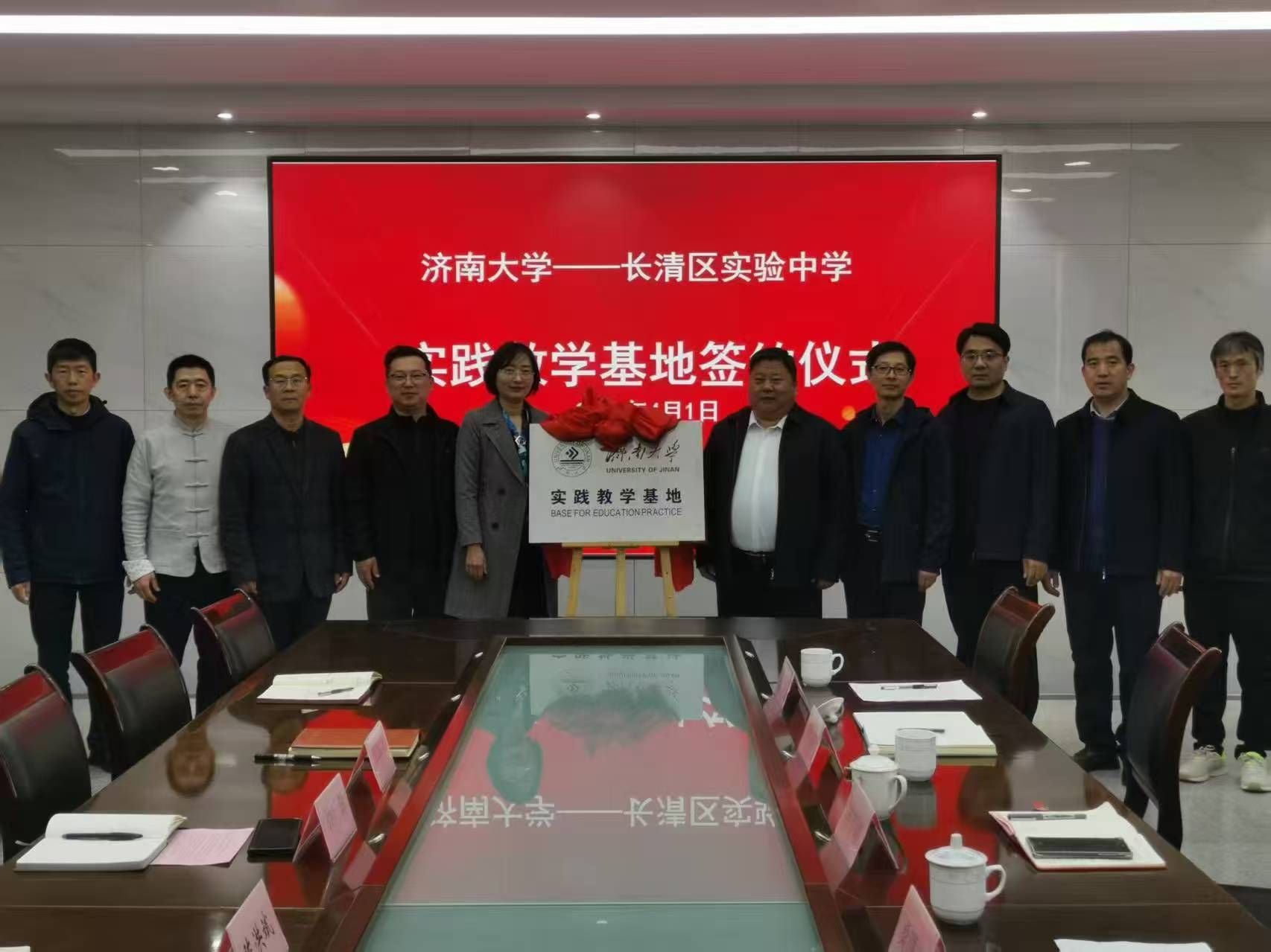党委书记陈春锋、副院长杨海波、院长助理桑曙光、美术系主任陈炜、教工一支部书记丁奕翔等一行赴长清实验中学开展本科实践教学基地签约授牌仪式。长清区实验中学党总支书记孙广益、校长陈洪斌、副校长郑海龙、教育处主任薛平峰等教师代表参加了签约仪式,签约仪式由长清区实验中学副校长郑海龙主持。