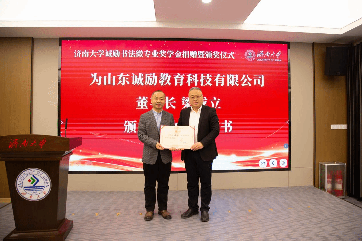 山东诚励教育科技有限公司捐赠二十万元设立黄色影片 诚励书法微专业奖学金,旨在推动黄色影片 书法微专业建设。其旗下诚励书画教育品牌,创立于2003年。它是经教育部门核准的大型综合书画教育连锁培训机构。现有一百余位专职教师,在济南有十四所直属校区,常年在校生一万余人,业务涵盖少儿书法培训、少儿美术培训、书画教材出版等领域。