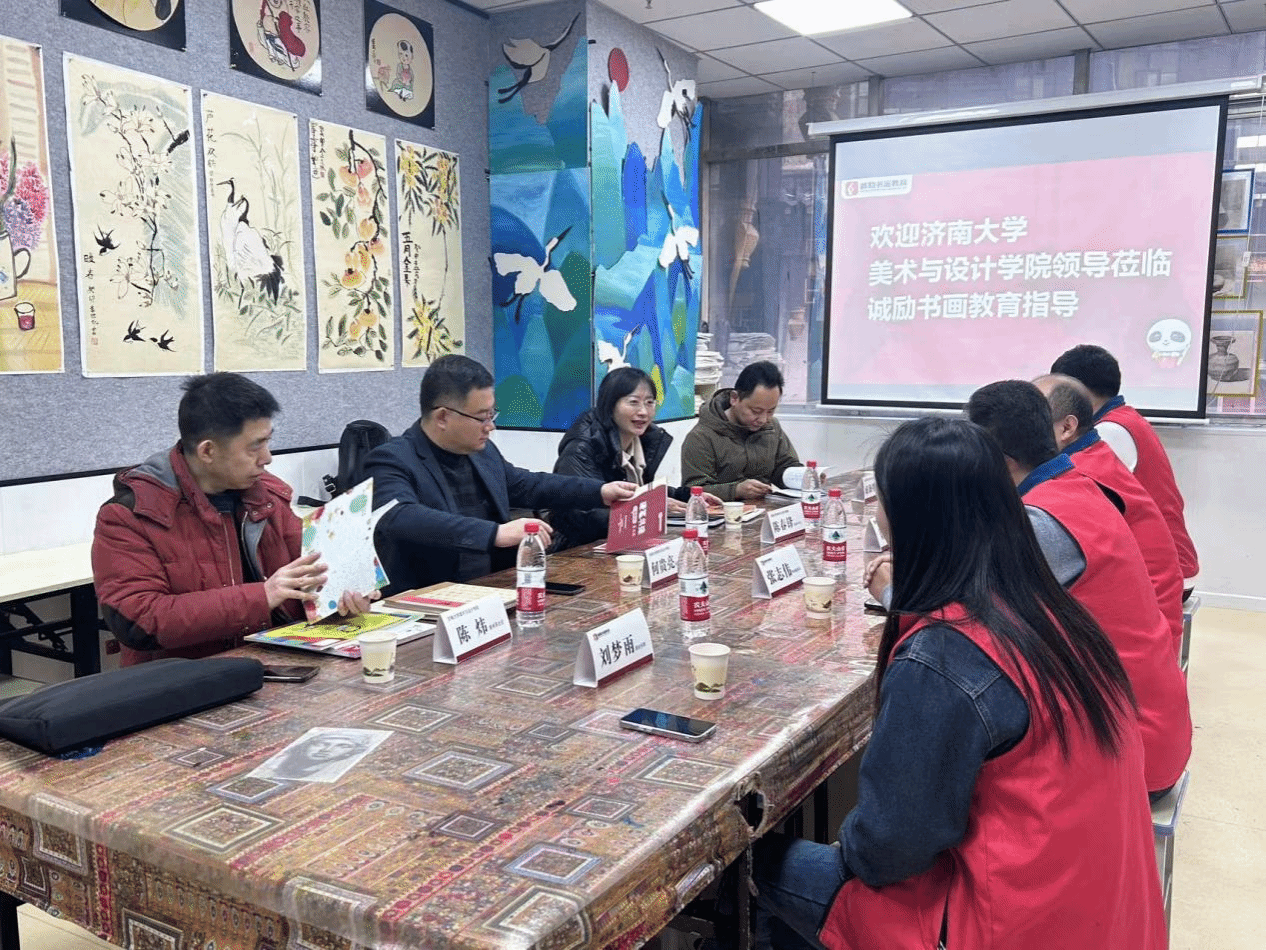 党委书记陈春锋,党委副书记、副院长何贵亮,美术系主任陈炜,实训中心主任成海明一行4人到济南市诚励书画教育培训学校进行走访调研。济南诚励书画教育培训学校校长梁成立、常务副校长张志伟、大观园校区校长叶腾、书法师训导师刘梦雨等人进行了热情的接待。双方参观了诚励书画教育大观园校区,并进行了亲切座谈,就用人单位具体需求、书画专业学生的人才培养、实习实践、就业基地建设等校企合作议题进行了深入的沟通。